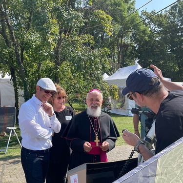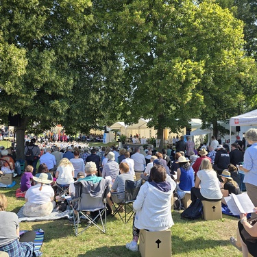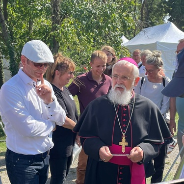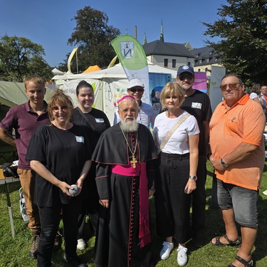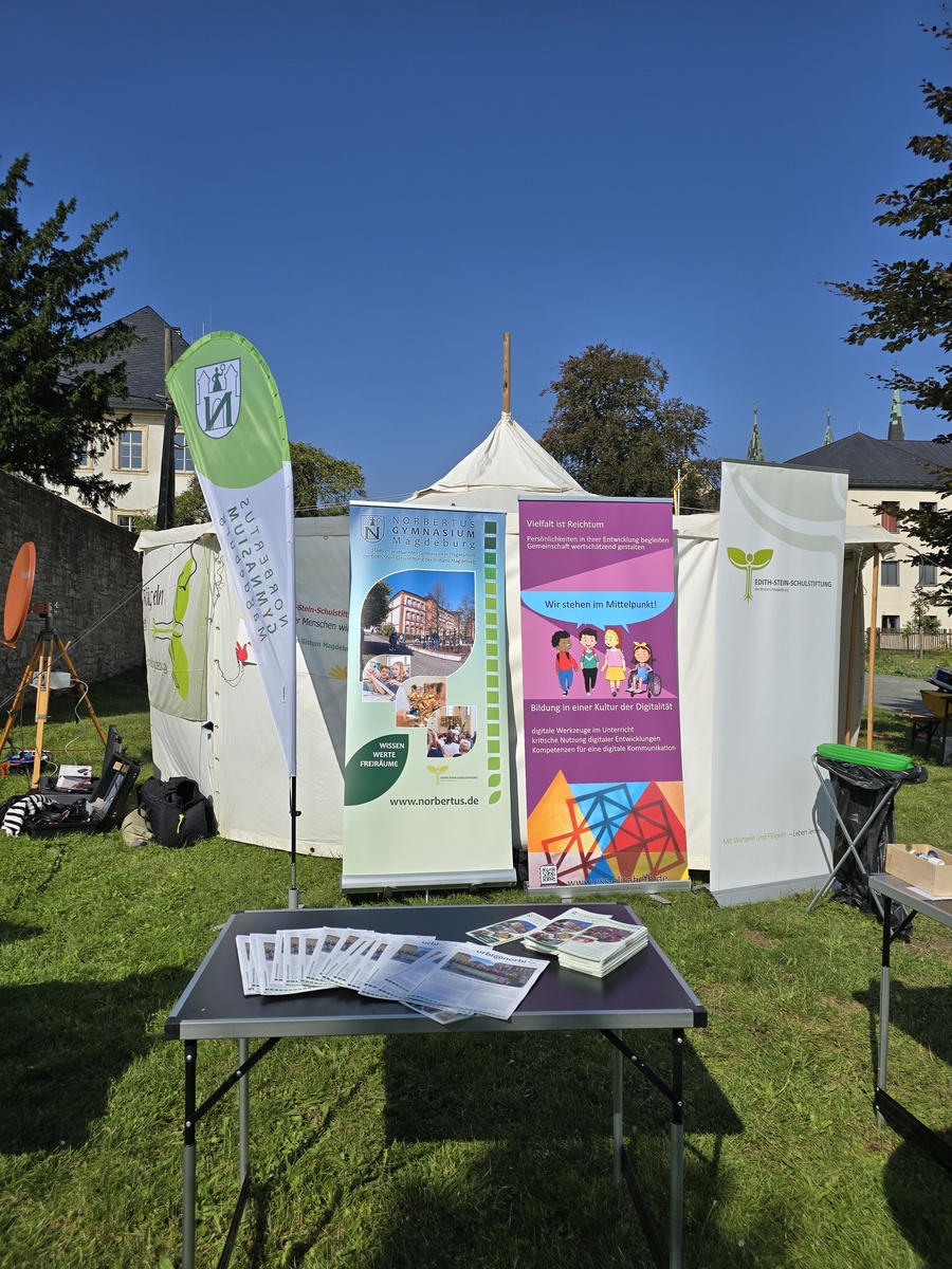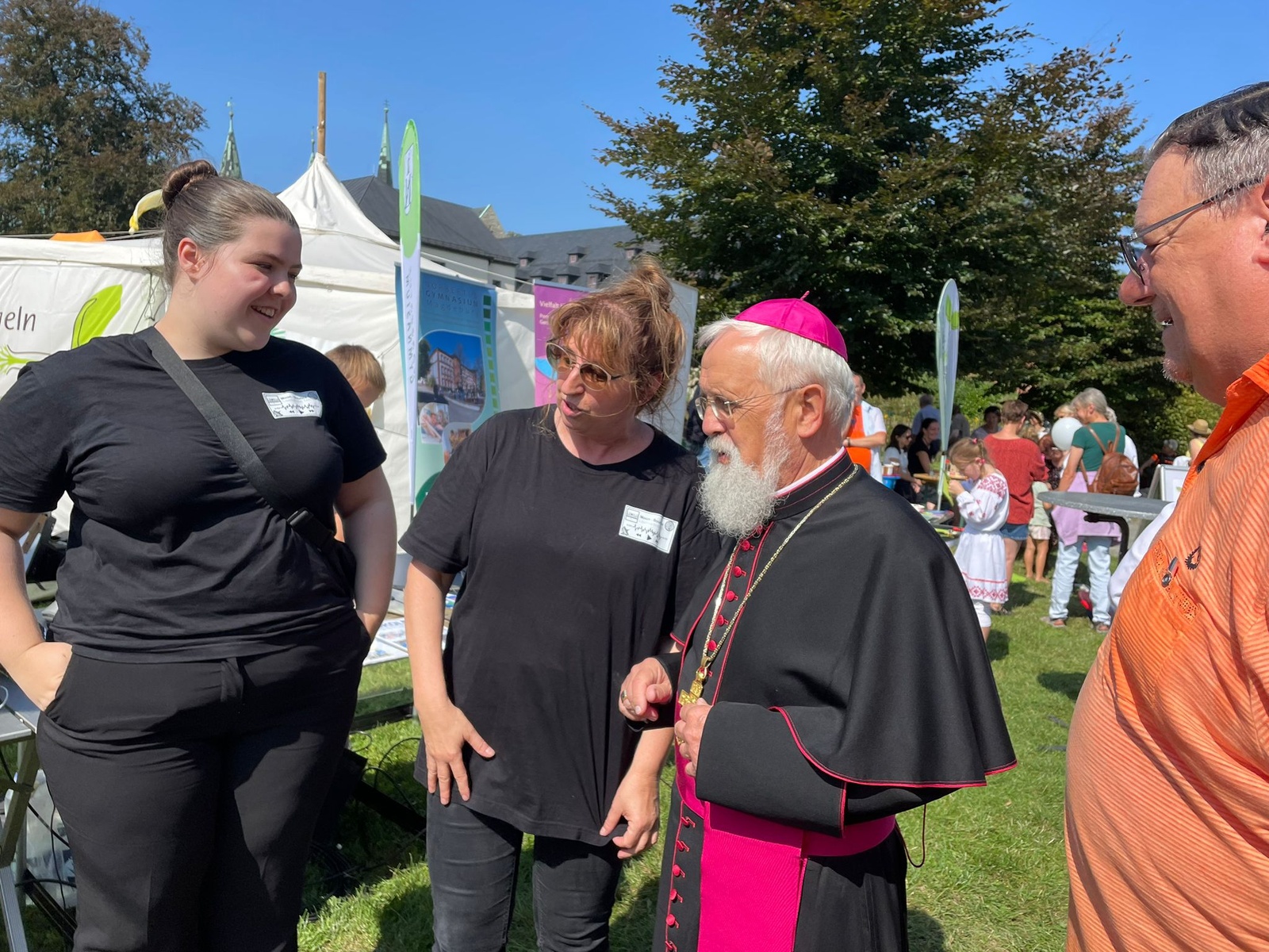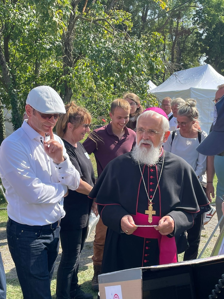 Wie in jedem Jahr war die Schulstiftung auch in diesem Jahr am ersten Sonntag im September mit ihren 8 Schulen bei der Bistumswallfahrt auf der Huysburg vertreten. In diesem Jahr feierten wir zusätzlich die Wiedererrichtung des Bistums Magdeburg vor 30 Jahren. Unter dem Titel „Den Himmel offenhalten“ versammelten sich ca. 2.500 Menschen. Herr Kraft, Schulleiter des Liborius-Gymnasiums in Dessau, hat es so formuliert: „Der Einsatz war auch sichtbarer Beweis dafür, dass wir mit unseren Schulen den Himmel … in spiritueller Hinsicht offenhalten, indem wir den Menschen, die bei uns lernen und lehren, Dimensionen eröffnen, welche ihnen die Gesellschaft und die Bildungslandschaft an den öffentlichen Schulen Sachsen-Anhalts oft nicht eröffnen.“