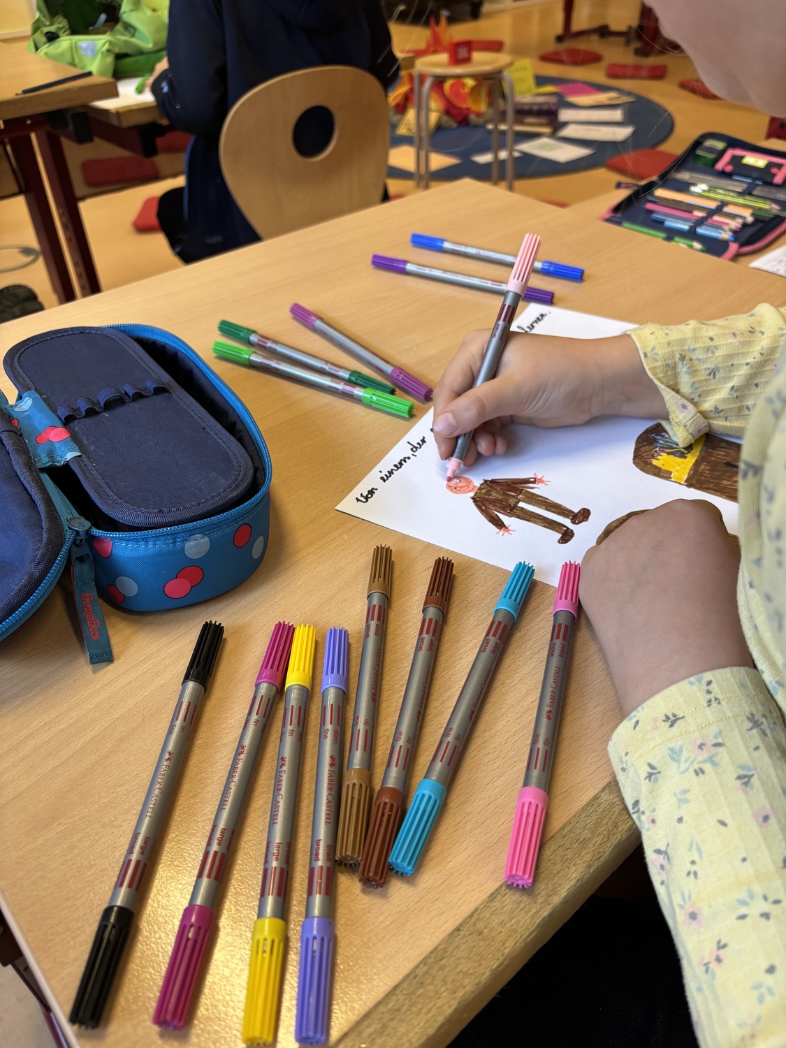 Der Vorlesetag bildete zudem den Abschluss einer Projektwoche rund um die Welt der Literatur. In den Klassen entstanden Gedichte, gebastelte Figuren und eigene kleine Texte. Die Kinder konnten Sprache auf vielseitige Weise ausprobieren – mal spielerisch, mal konzentriert und immer mit viel Fantasie. Die Woche zeigte eindrucksvoll, wie lebendig Lernen werden kann, wenn Geschichten Raum bekommen.