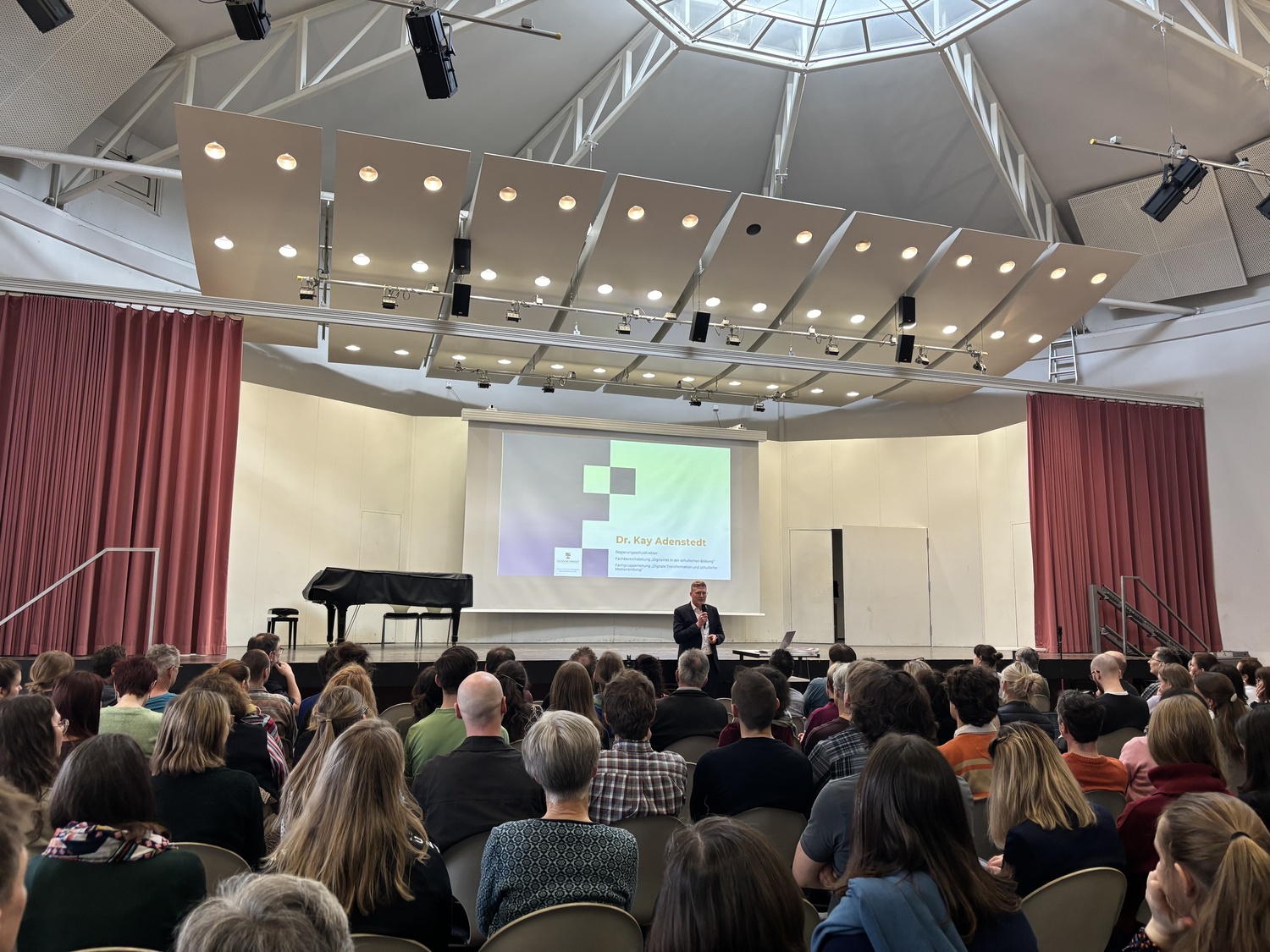 Den inhaltlichen Auftakt bildete eine Keynote von Dr. Kay Adenstedt vom Landesinstitut für Schulqualität und Lehrerbildung Sachsen-Anhalt (LISA), der das Lernen „über und mit KI“ in den Kontext aktueller Entwicklungen stellte.