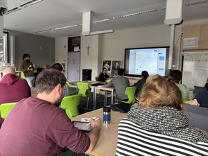 In zwei Workshop-Phasen arbeiteten die Teilnehmenden anschließend an konkreten Fragestellungen – von grundlegenden Zugängen zur KI über den Einsatz digitaler Tools im Unterricht bis hin zu Fragen einer veränderten Aufgaben- und Prüfungskultur. Im Mittelpunkt standen dabei insbesondere der reflektierte Einsatz von KI im Unterricht („begleiten statt verbieten“), kooperative und selbstständige Lernformate sowie neue Ansätze für das Prüfen mit und trotz KI.