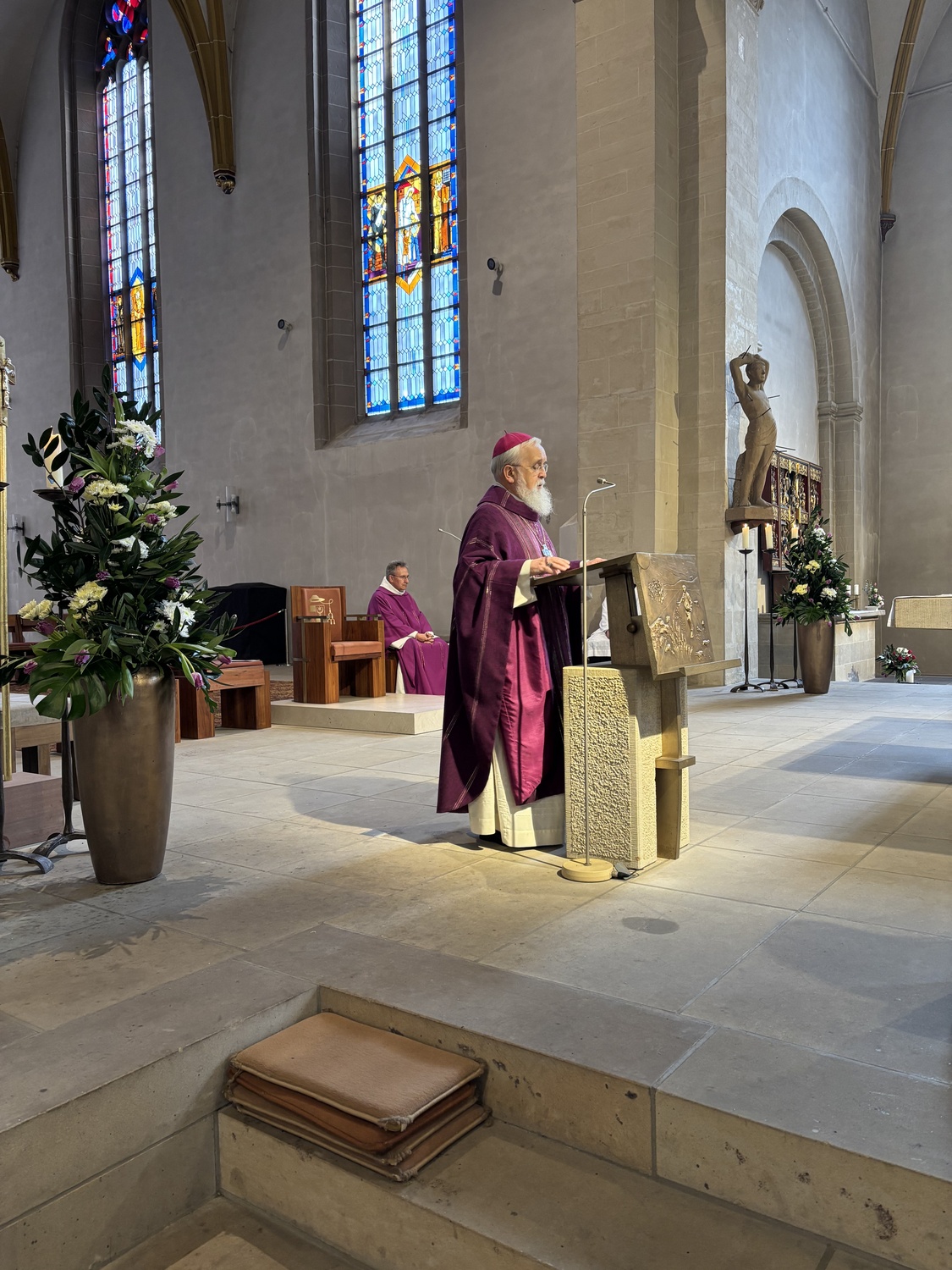 In seiner Predigt stellte der Bischof die Notwendigkeit und Aufgabe einer authentischen Positionierung von Religionslehrkräften und Schulseelsorgenden heraus. Diese stünden „in der Tradition einer Kirche, die für eine Haltung einsteht, die jeden Menschen annimmt als von Gott geschaffen und deshalb mit einer unveräußerlichen Würde ausgestattet.“ Diese Haltung zeige sich darin, den Glauben zu bezeugen, ohne zu indoktrinieren, für Werte einzustehen, ohne andere zu beschämen. Sie bedeute auch, zu widersprechen, wenn Menschenwürde verletzt werde, und zuzuhören, wenn Menschen ringen, zweifeln und suchen.