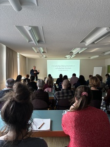 Einen grundlegenden Impuls gab Prof. Dr. Holger Zaborowski von der Katholisch-Theologischen Fakultät der Universität Erfurt. Er eröffnete philosophische und theologische Perspektiven auf das christliche Verständnis vom Menschen und ordnete diese in gegenwärtige Herausforderungen ein.