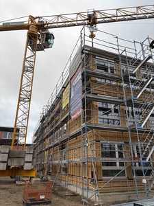 Der Bau schreitet zügig voran: Nach der Grundsteinlegung im Mai 2025 und dem Richtfest im November ist die Fertigstellung des Neubaus bis Ende 2026 vorgesehen. Möglich wird dies auch durch den hohen Vorfertigungsgrad der eingesetzten Holzelemente. Die Gesamtkosten von rund 15,4 Mio. Euro bewegen sich dabei in einem bundesweit vergleichbaren Rahmen für Schulneubauten.